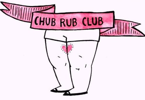 The phenomenon known as chub rub happens when the skin of the inner thighs rubs together, especially when said thighs are a little moist — thanks, humidity. Even though it's definitely a very common #FatGirlProblem, inner thigh chafing can happen to anyone whose thighs like to get cozy in hot weather. This can create all kinds of discomfort and cause your inner thighs to form a rash, sting, burn, become bumpy, or even bleed. Chub rub might have a cute name, but it's no joke. Seriously, this thing can ruin your summer. It must be stopped