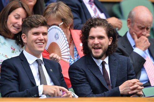 I can't believe I'm about to do this to you again, but I know you want to hear a new, hair-cut based reason why I think Jon Snow is coming back to Game of Thrones ? We've looked to the books by George R.R. Martin for clues that Jon Snow might be resurrected, and found plenty of proof there, as well as looked for symbolism in the last few episodes of the show, but now it's time to stop messing around and go to the source itself — Kit Harington. Harington is, of course, the actor who plays (or played!) the character Jon Snow, and he's been adamant in interviews that Harington isn't returning for future Game of Thrones seasons after he bled out in the snow during the finale. But, instead of believing the words that come out of his mouth, since that's too easy, I'd rather mine his personal appearance for clues, so that's what I'm doing. Harington showed up at Wimbledon with those long, Jon Snow locks intact.