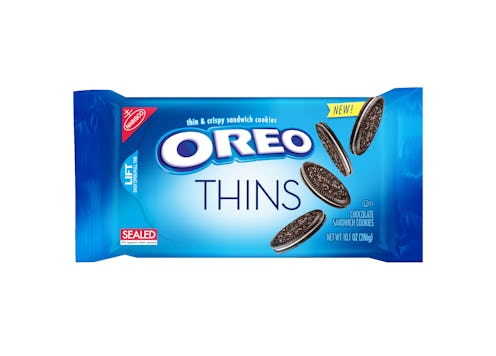 According to a press release, an OREO Thin is "a crisp, delicate cookie that delivers on the OREO cookie taste you already know and love." They're intended to appeal to a slightly more adult audience: People who grew up loving OREOS, but now want a more refined version of the treat. Because who says you can't have cookies once you leave single digits? No one. That's who. Oh, and did I mention that OREO Thins are permanent offerings? No worries about not being able to get a hold of them after their brief moment in the sun like all those limited edition OREO varieties!
