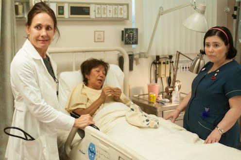 The pilot's most lovable — or least intolerable — stars were Nurse DiDi, brilliantly played by Niecy Nash, and Nurse Forchette, neurotically carried out by Alex Borstein. This duo dealt with the death of a patient, unclaimed fecal matter, administrative problems, and Medicare battles with only the darkest sense of humor. Their lives were further complicated by Dr. Jenna James, whose generally dickish attitude creates a storyline all its own. Laurie Metcalf, who plays Dr. James, has certainly set a high bar for somehow-familiar-but-also-bizarre workplace pissing matches.