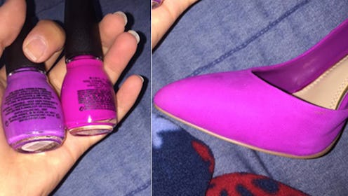 Perhaps the craziest part of all of this is that these polishes are supposedly the same color. But, they're clearly not, right? Both polishes are called "Dream On" and are from the same brand, Sinful Colors. Munro was unaware that they were labelled with the same name until after she came home and tried to decide which polish was the same shade as her fuchsia pumps. Talk about proof that this is all a coincidence!