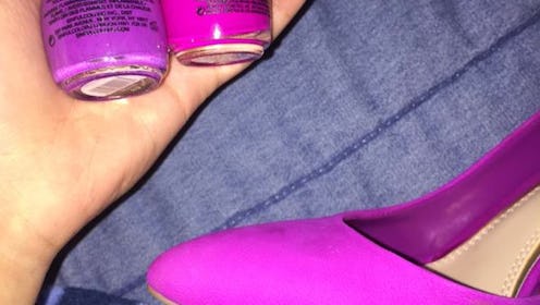 You might have noticed there's a new optical illusion making the rounds on the Internet. People are asking which shade of nail polish matches this shoe, and it seems that no one can agree. The whole thing is fairly reminiscent of the The Dress, aka The Thing That Nearly Destroyed the Internet And Shall Be Set Down In The Great Online History Books. But even though I certainly see why the shoe debate would remind people of The Dress, really, the two aren't that much alike. There — I said it: The Shoe Debate is nothing like The Dress Debate. Just deal with that for a moment.