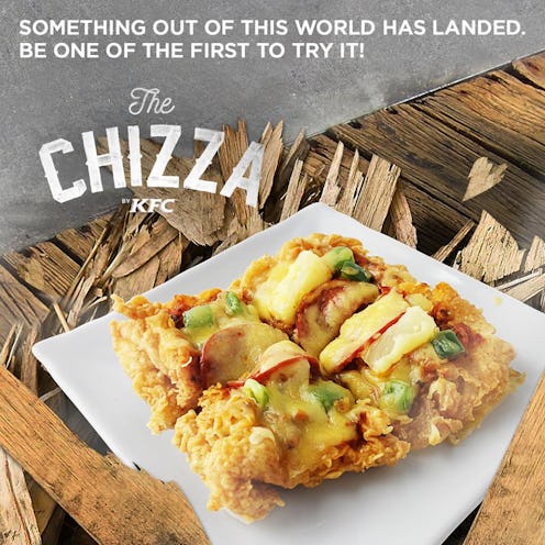 Fried chicken is good for a lot of things. Eating, comes to mind, for example. Also drumming, maybe, if you're eating fried chicken legs and into percussion instruments. But the latest thing to come out of the innovative kitchens at Kentucky Fried Chicken might be the most inspiring way to utilize fried chicken yet: The new "Chizza" from KFC Philippines is essentially fried chicken crust pizza. Yes, this is the second pizza-chicken hybrid to have popped up in the space of a week. This trend is showing no signs of stopping.