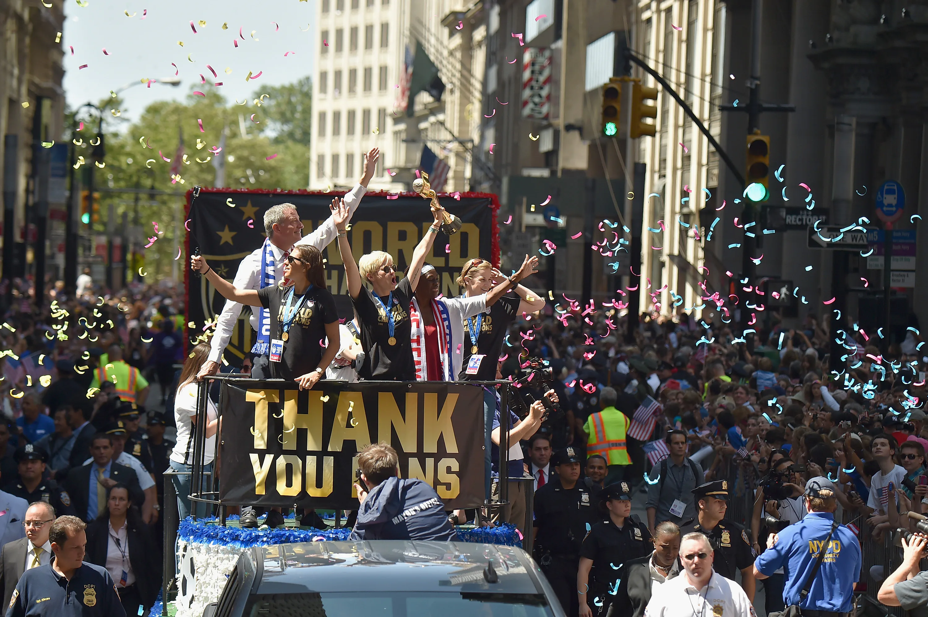 This might be the saddest single element of the whole parade, on par with the USWNT only earning one-fourth what the men's champ did. It also costs a whole lot of money to throw a proper, hero's welcome-style parade. And, as it turns out, the awesome spectacle Friday was brought to you in large part by... the state of New York!