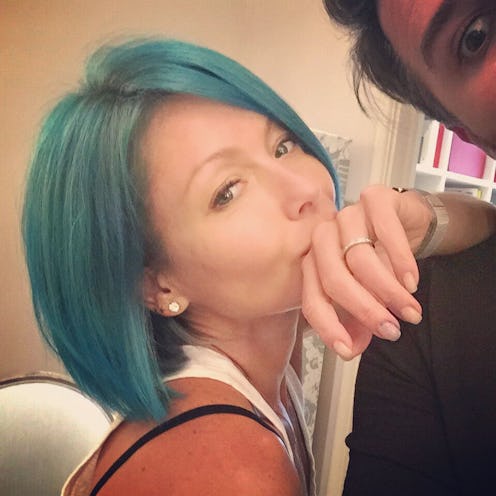 After a fun experimentation with pink, Kelly Ripa's new blue hair proves the star is clearly enjoying the world of rainbow hair colors. If the new blue hair look Ripa's rocking has got you wondering how to dye your hair blue, I promise you can do it yourself! As a former aqua (and pink) haired gal with no previous experience dyeing hair, it's really not as intimidating as it sounds. I'm warning you though, once you start playing with rainbow colors in your locks, it's hard to stop.