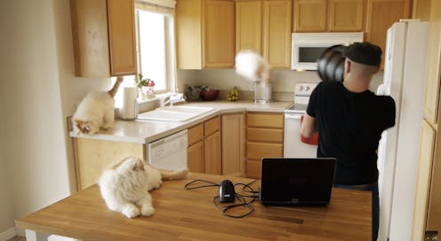 Cats are better than humans, as we previously established as hard fact just the other day. Humans, however, are still moderately clever and can be successful at mobilizing cats for their own uses. For example, there's a guy who created a catzooka. Or more appropriate, there's a man with a ridiculous hat and impressive video editing skills who presented the idea of a catzooka, a device that shoots adorable, fluffy white cats from it. Why not!
