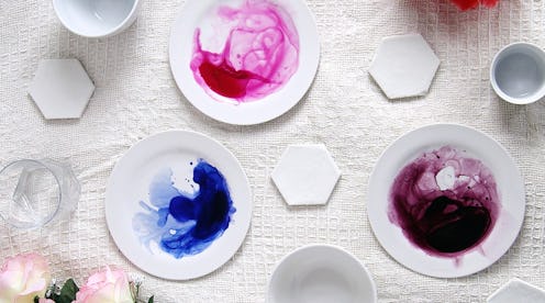Add a splash of color to your table with these DIY watercolor plates. Swirl your own vibrant pattern with paints and water to create this dreamy tableware.