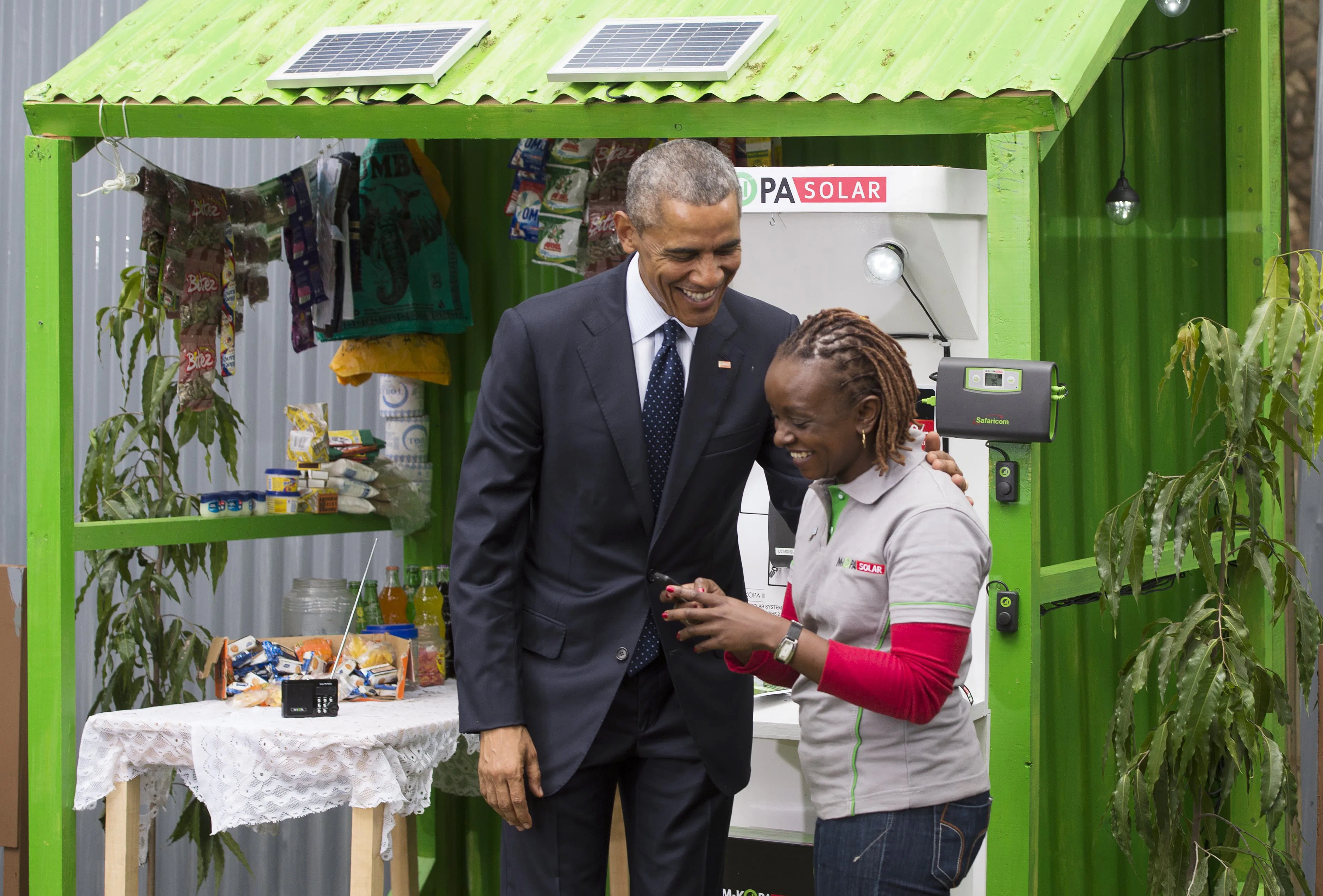 The massive gift, and his presence at the economic summit, comes largely as part of the president's Power Africa initiative, which the White House describes as "an innovative partnership to double access to electricity in sub-Saharan Africa." Following his remarks at the summit, Obama met with several Power Africa partners, including those working on solar-powered technology to bring to the continent.