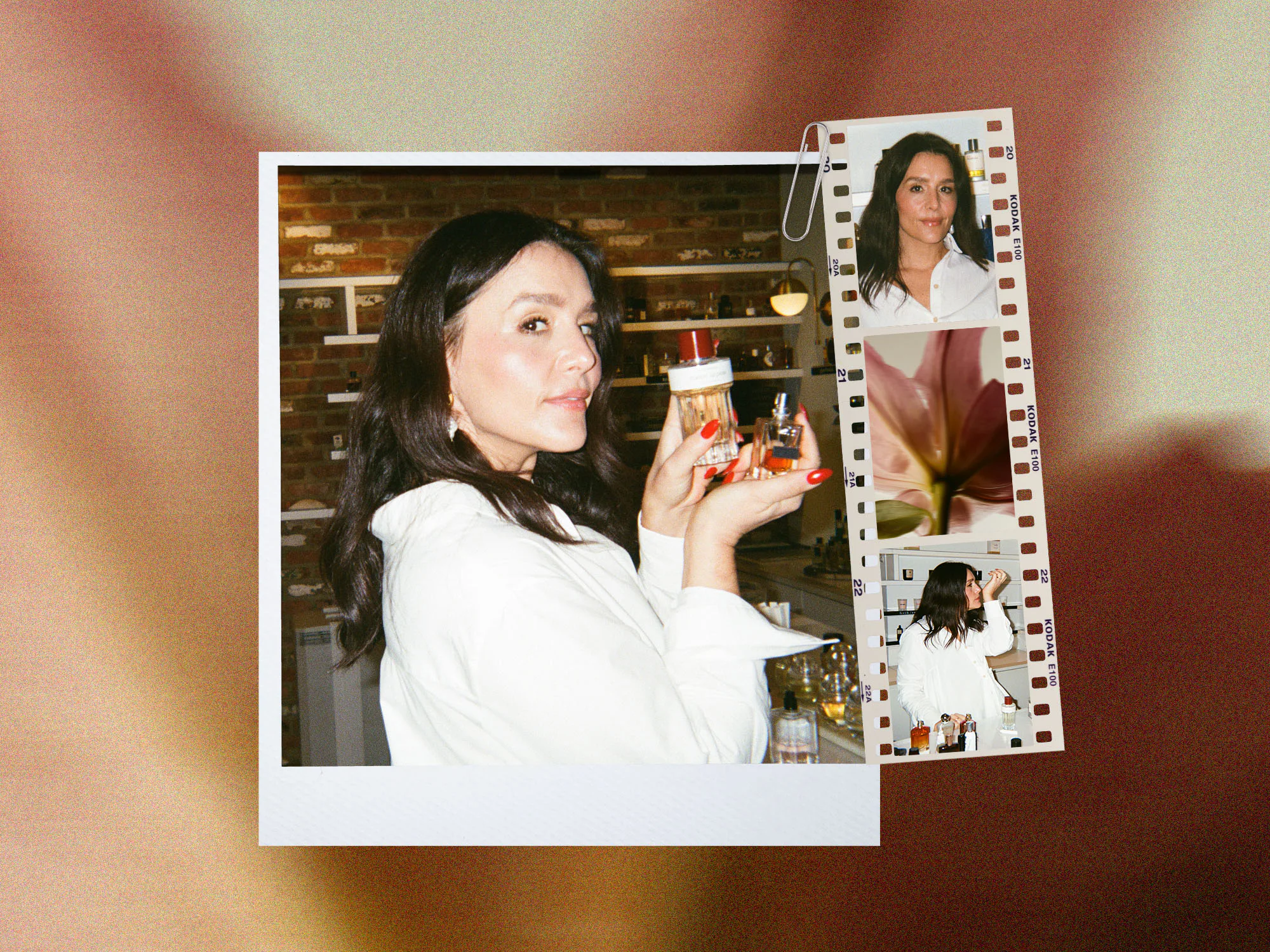 Delilah, meanwhile, grabs Contre Ta Peau by Chambre52. The founder started the brand after an inspiring stay in a hotel in São Paulo, Brazil; the blood-red bottlecap is a nod to the tilework of its rooftop pool. (He hasn’t specified which hotel, but there are only so many that fit the bill.) “I’ve been there!” Ware says. “It’s all wood paneling and has these beautiful leather chairs. It’s an amazing hotel. I went there for a drink.” What’s more: The fragrance is an immediate contender. “That’s very interesting,” she says, holding the paper tester strip. “Can I smell cumin? Pink pepper? There’s a brightness that comes through.”