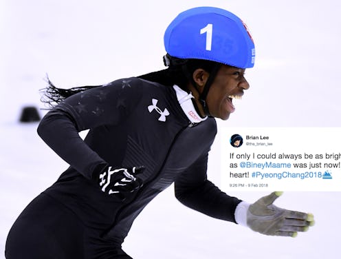 Just before the opening ceremony for the 2018 Winter Olympics kicked off in PyeongChang, the NBC team caught up with USA speed skater Maame Biney. And the athlete's feelings about being at the Olympics were, in a word, delightful. Understandably, her excitement prompted many to tweet how excited they are to cheer Biney on.