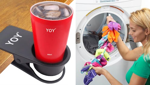 8This Clip-On Drink Holder For Tables And Desks