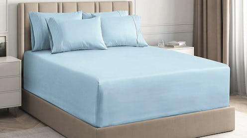 There is nothing worse than struggling to put a fitted sheet on when it won't fit your mattress. These extra deep pocket sheets stay snug on mattresses that measure 18 to 24 inches deep. This six-piece set comes with a fitted sheet, top sheet, and four pillow cases. The microfiber sheets are resistant to tearing, shrinking, and fading. Choose from a variety of solid colors such as coral, sage, and lavender. This sheet set has a 4.6-star rating and more than 27,000 reviews.