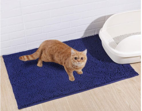 With more than 25,000 five-star reviews, this Gorilla Grip litter mat is one of the most popular picks on Amazon and it’s been tried and tested in the home of Bustle editor Cristina Sanza. One reviewer called it a "lifesaver," adding, "I literally don’t step on litter anymore!" The textured, mesh squares are made of thick, rubber-like PVC coils that easily trap litter. Though it's durable enough to be scratch- and tear-resistant, users love how soft it is, with one writing that their cats even love to lay on it. The phthalate-free mat can be wiped down or vacuumed clean and has a slip-resistant, waterproof bottom to keep it in place. It's available in 16 colors, including black, beige, and hunter green, and you can choose from multiple shapes and sizes to accommodate multiple litter boxes.