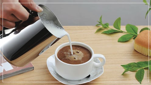 To try your hand at making latte designs at home, you’ll need one of the best latte art pitchers, which are made of high-quality stainless steel and come in the spout design that suits your latte art style. Bustle got in touch with Gabe Venegas, Licensed AST Trainer (Authorized SCA Trainer) with the Specialty Coffee Association and an educator at Maru Coffee, to learn what to look for in a pitcher.