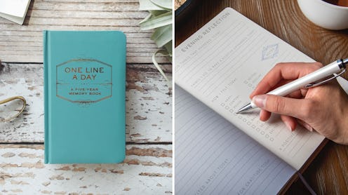 This one-line-a-day journal has a page for each day of the year, and each day is broken into five sections so that you can record five years’ worth of entries. The individual pages are printed with dates (e.g. January 1), but you fill in the year yourself — so if you don’t mind some blank spaces, you can certainly hop in and out of the journal as you’d like throughout the year. However, it’s a low-lift effort to write just a bit every day, and over time, it will turn into a five-year record you’ll be glad to have. Because there aren’t prompts, you can also feel free to use the journal how you like, whether as a traditional diary, a daily gratitude journal, or answering prompts of your own. It has 370 pages with golden edges and a sewn-in bookmark.