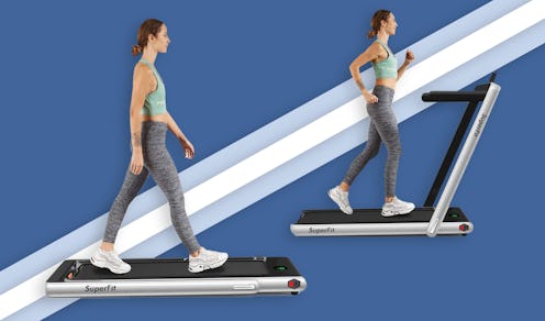 If you already have a WFH desk you love, this hands-free treadmill is the perfect option to help you get in a few more steps while you're working. It has a 17-inch wide belt (and 41 inches in length) and rubber struts to help reduce shock and keep you comfortable while you exercise. It also features a touchscreen LCD display right at the front of the treadmill, but if you'd rather not bend down to mess with it, it also comes with a wireless handheld remote. The only downside to this treadmill is that it's made for walking only as its highest speed is 4 miles per hour. You should be able to briskly walk with this one, but it likely won't move fast enough for you to jog or sprint.
