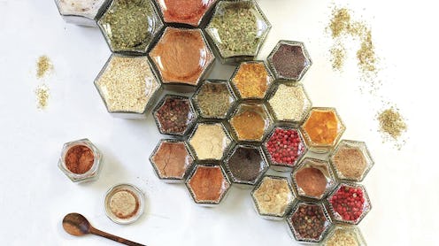 These magnetic spice organizers look like culinary art. When you fill them, the color of each spice shines, adding a beautiful touch to this functional design. The hexagon-shaped glass containers have high-quality magnets on the lids that can be stuck to your fridge or adhered to a steel wall plate base that is sold separately and can be mounted to a wall. Reviewers mention that these spice jars hold less than traditional containers, but the plastic-free jars and airtight lids keep your spices fresher for longer. This pack also includes 72 washable spice label stickers that you can add to organize your collection. The pack featured here comes with 10 jars, but it is also available in larger sets: like this 12 large-sized jars, or 24 large-sized jars.