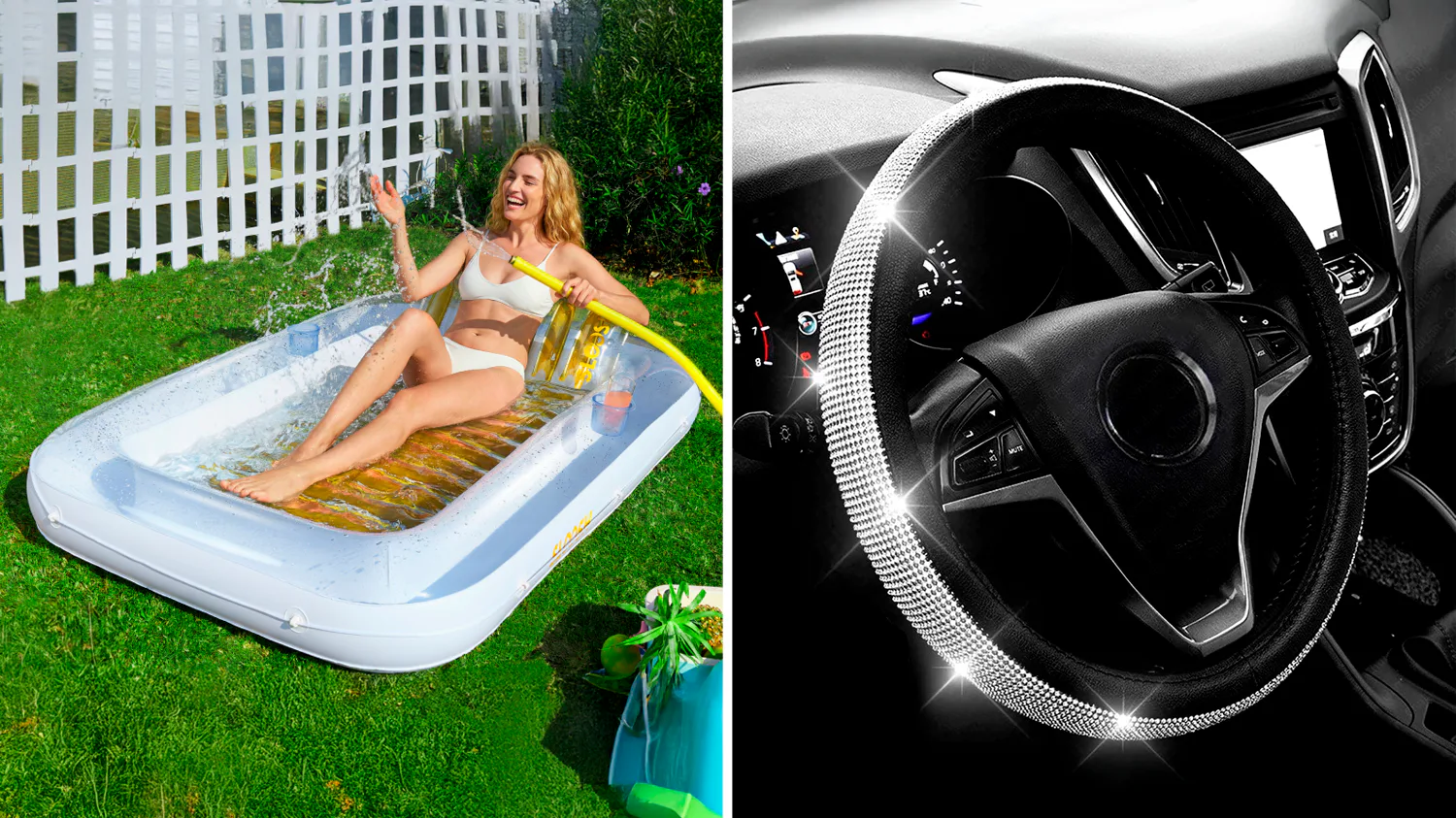 This rhinestone steering wheel cover decorates your interior in the most glamorous way — and reviewers confirm it’s stunning; it has earned a 4.8-star overall rating on Amazon. Since it has an anti-slip rubber lining, it won’t budge as you drive.