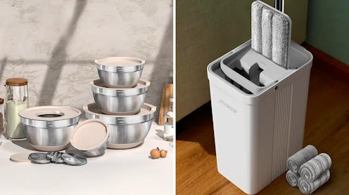 These stainless steel mixing bowls are such a polished, high-end swap for old plastic ones. The matching set comes with five different sizes, lids, and three grater attachments for fine grating, thick shredding, and thin slicing directly into the bowl. They have nonslip silicone bottoms to keep the bowls sturdy without scratching or scraping your countertop.