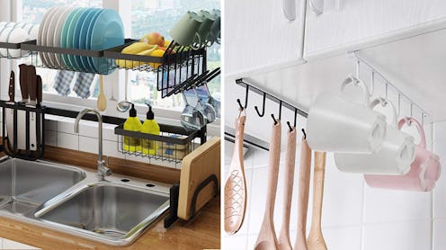 When you have a small kitchen, precious counter space is the last thing you want to sacrifice. Replace cumbersome dish drying racks that steal space with this clever over- the-sink drying rack that boasts two tiers, is made of stainless steel, and can hold up to 80 pounds. The rack has divided compartments and can suit plates and cooking tools of various sizes. Hooks for drying cups and glasses and a designated spot just for drying a cutting board add to its thoughtful design.