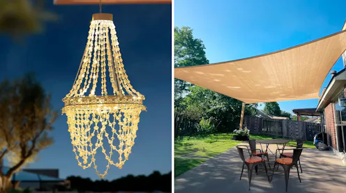This hanging chandelier makes your patio or outdoor dining space feel infinitely more elegant. While it looks like a real crystal light fixture, it’s actually made from durable acrylic beads hang from a cut-out metal canopy, making it waterproof and weather-resistant. It also has a solar panel that collects sunlight to power its warm-white LEDs, so you don’t have to worry about plugs or wires.
