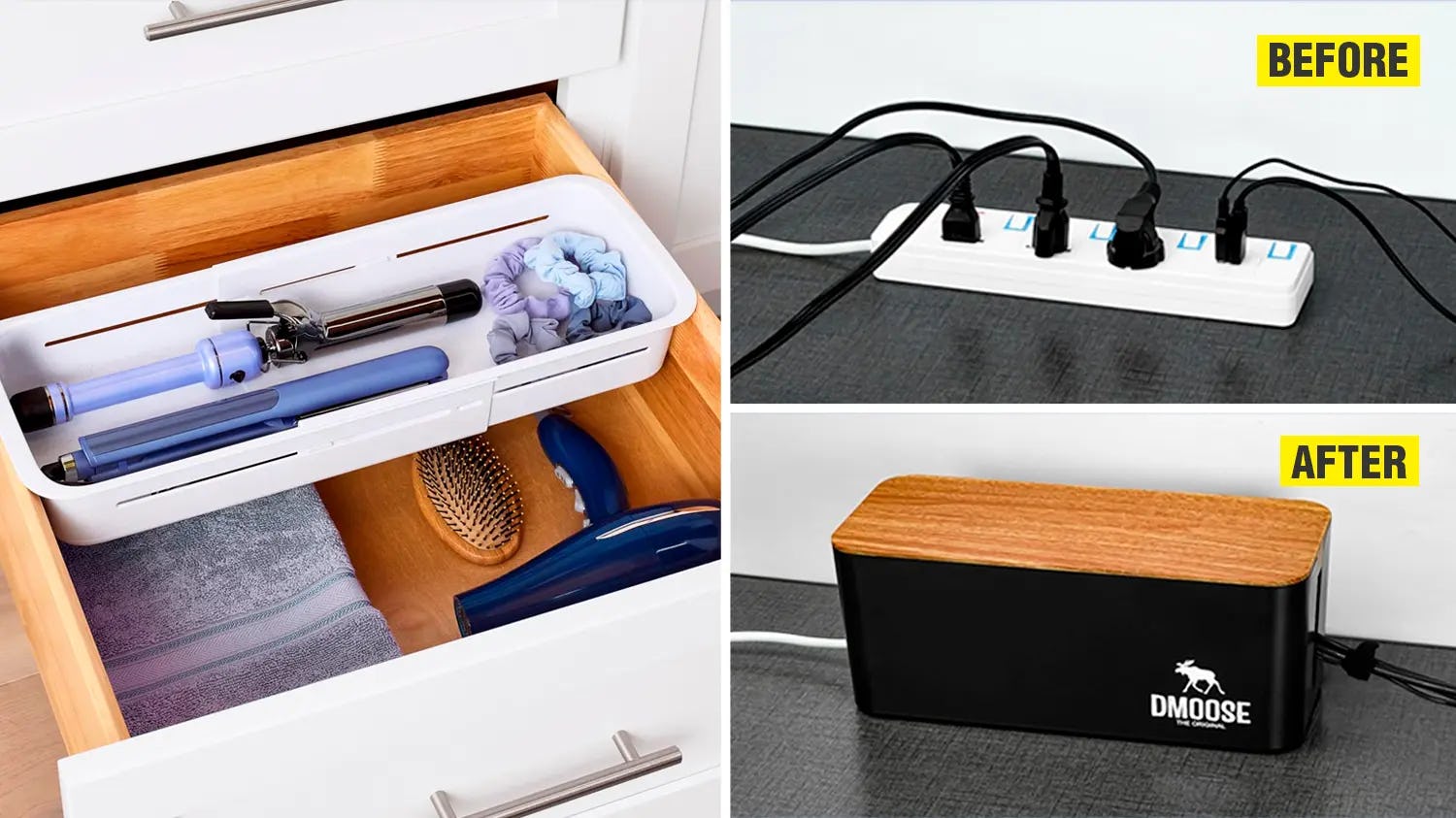 Hide your collection of wires in probably the most polished cable management box I've ever seen. Topped with a crisp woodgrain lid, this compact container houses power strips with a slim slot to thread your wires through while you power your devices. Put simply, it does a 10/10 job of hiding pesky cords while also being super functional.