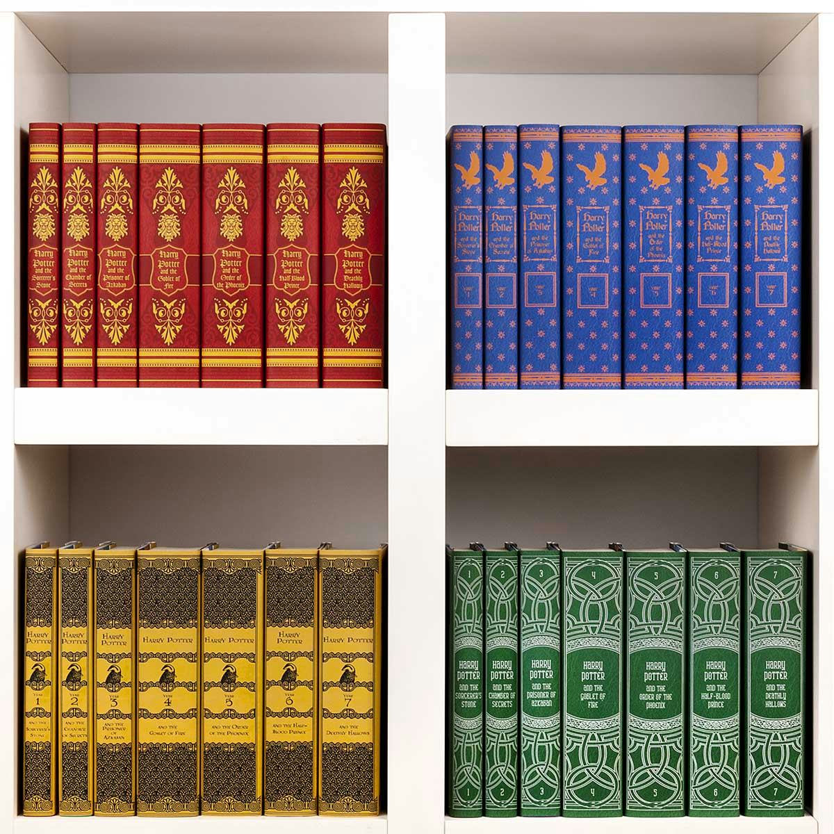 This is a lovely set of custom HP books (available from Juniper Books). Ravenclaw is pictured above, but you can also get this collection in Gryffindor, Slytherin, or Hufflepuff.