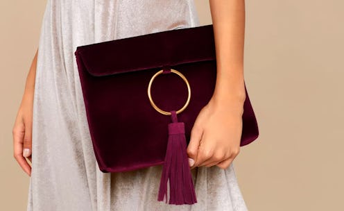 Lulu's Carrington Burgundy Velvet Tassel Clutch, $62, Lulu's