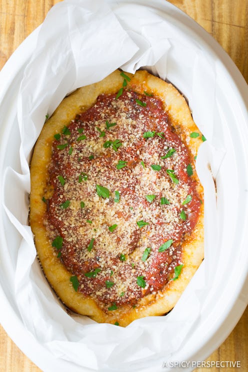 Yes, seriously, with the help of this recipe by A Spicy Perspective, you can make a deep dish pizza in your crockpot. #Goals.
