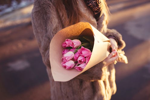 Valentine's Day is a holiday that is dedicated to celebrating love. The true meaning of the holiday shouldn't be commercial, but more genuine. It should, ideally, be a day when you feel grateful for the relationship you're in, when you remind yourself how lucky you are to have your partner (and how lucky they are to have you!), and when you two do something to celebrate that love. But, let's be real: Valentine's Day is also a day to receive gifts, and if you're the kind of person who loves presents, then it's a pretty special day. From chocolates to flowers to something more sentimental, it can be hard to keep your V-day gift all to yourself. So, sometimes you indulge in a little bit of social media bragging (who can blame you?) and you post a photo of your gift online. And if you need a caption to do with it, there are some Valentine's Day Instagram captions to use about presents you've received, and they're all below.