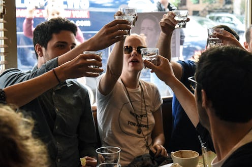 In some bars, like the Tattle Tale Room in Los Angeles, the mood was tense, as watchers sipped mimosas with their eyes glued to the screen.