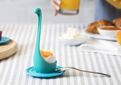 Looking for a fun, new way to present soft- and hard-boiled eggs? The OTOTO Miss Nessie egg cup is not only 100 percent food-safe and BPA-free — but you can also use it to cook your eggs in addition to serving them. Just place an egg in the base, then place Miss Nessie into your pot of water: The feet will keep it in place while the egg cooks.