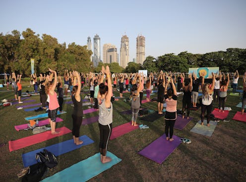 Whether you have a yoga practice or not, Curry suggests doing 10 to 20 Sun Salutations each morning. "I blast a favorite song and start moving. You can generally do 10 Sun Salutations during one song," Curry says. "These specific movements wake up your body and mind, release anxiety and tension (which cause reactivity), and help to keep you grounded throughout the day." So roll down a mat and spend a few minutes jamming out and stretching out each morning.