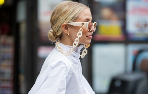 No matter what sunglass trend you indulge in this season, accessorize them with a chunky chain. Sure, they serve a practical purpose, but they also look playful and retro when added to your look.