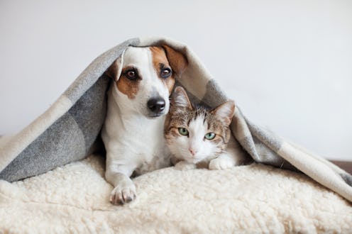 Animal Planet notes that animals get acquainted primarily through scents, and not so much face-to-face like humans do. Before your pets meet for the first time, Animal Planet suggests an intro via scents. You can "gently rub a T-shirt, sock, towel, or washcloth over the dog, and place it near the cats food, dish, or bed," before the first intro meeting, Animal Planet says — and you can also reverse the process for your dog. By giving them access to one another's scents before and during the introduction process, your pup and kitty's initial meetings will likely be a more relaxed affair.