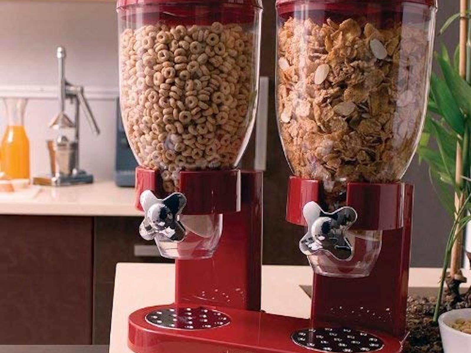16This Double Cereal Dispenser That Prevents Counter Messes