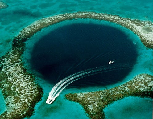 Off the coast of Belize lies a massive underwater chasm hundreds of feet deep, known for its deep blue waters. Perhaps unsurprisingly, it's become known as the Great Blue Hole over the years. I can't speak for anyone else, but I have no desire to know what's lurking in its depths. (Cthulhu. Definitely Cthulhu.)