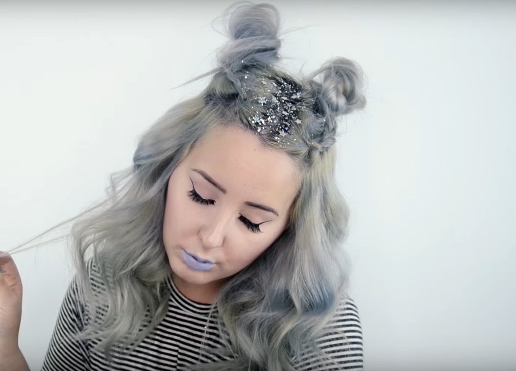 If you weren't able to head to Coachella this year, you can still take advantage of one of the biggest trends of festival season: glitter roots. This ultra-fun, super festive look isn't just sparkly but customizable. From purple stars to classic golden glitter, the sky is the limit on how you want to rock this.