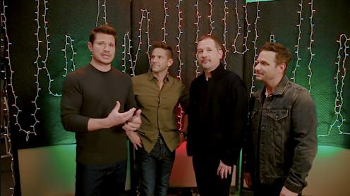 The 45-second clip opens with all four original members of the boy band standing by as Nick Lachey kicks things off by explaining their shared holiday experience, which occurred while they were performing on MTV's Fly2K tour in Paris. Fellow group member Jeff Timmons joins the convo, sharing that they spent the festive holiday watching the movie Fight Club together, as the quartet begins to jokingly make reference to one of the more widely remembered tidbits from the late '90s film.