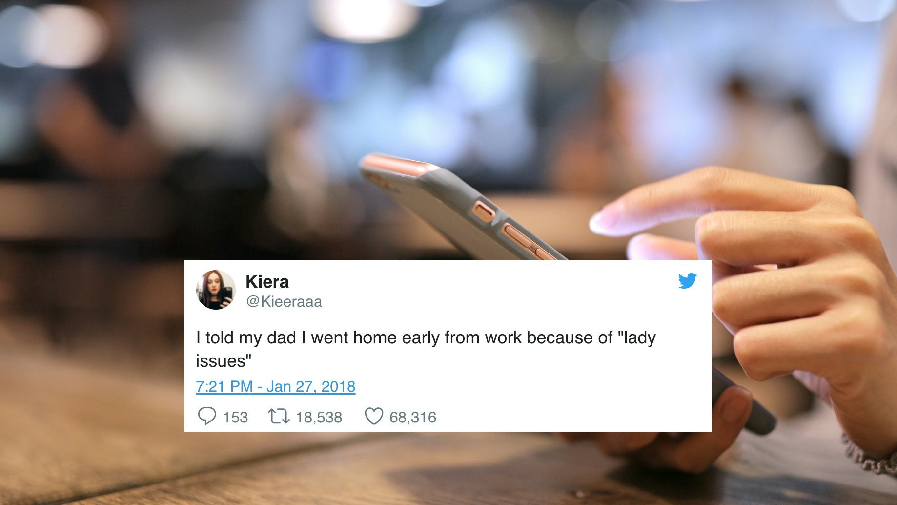 Becoming an adult naturally changes your relationship with your parents. If you’re lucky, that means that you become closer and more like friends. You become, for example, like Kiera Platt and her dad — which means that, when you text your dad about “lady issues,” he responds with the dad joke to end all dad jokes. Pack it up, everyone; no one is ever going to top this one, so we may as well all just go home.