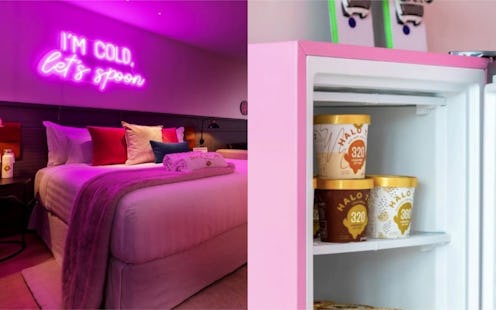 "We've teamed up with the luxurious boutique QT hotel to bring you New Zealand's first ice cream-themed hotel room in the heart of Queenstown," the website explains. And, as hotel rooms go, I have to say that this one looks DELICIOUS. Rich colors, neon lights — it's a color palate that's going to make you hungry (but in a Tide pod, please don't actually eat that sort of way).