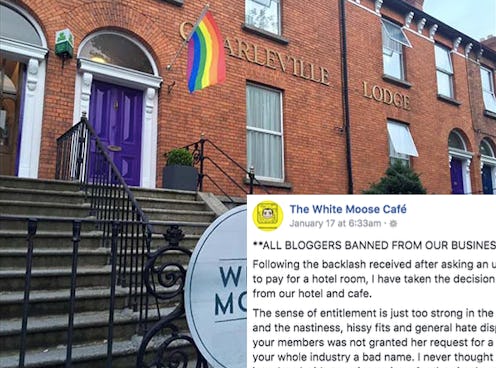 On January 16, Paul Stenson, owner of the White Moose Café and Charleville Lodge in Dublin, posted screenshot of an email he received. The email was from social media influencer Elle Darby, a beauty, lifestyle, and fitness YouTuber, although Stenson posted the screenshot of the email with her name and any identifying information blacked out. The email is a request from Darby for a five-night stay at Stenson's hotel, in exchange for social media coverage. (Stenson notes on the Facebook page, "***ALL POSTS ON OUR PAGE ARE CARRIED OUT BY PAUL STENSON AND DO NOT REPRESENT THE VIEWS OF CELESTINE LTD. TA CHARLEVILLE LODGE OR WHITE MOOSE CAFE***".)