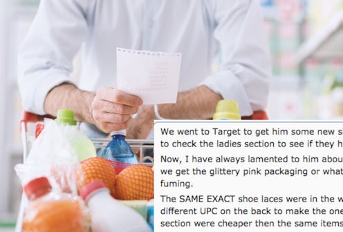 It started when Redditor u/KnitAFett went to the store with her husband to get some new shoelaces for him. It ended with the husband’s reaction to learning about the pink tax — and he’s still mad about it now. And, I mean, heck: Aren't we all? It's been a huge issue for years — and as this story demonstrates, it has now officially reached a level of Absolute Absurdity.
