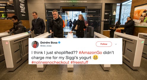 We anxiously waited with bated breath for the opening of Amazon Go — the marketplace titan's new store that allows customers to walk in, take what they want, and leave — no waiting in lines, no cashiers, nada. Obvi, we've all had the same huge question on our minds: how do you get charged, if no one's ringing you up? Still, many of us had faith in Amazon, because it's Amazon. Well, we there might be a few bugs to work out before versions of this store open nationwide, because on the day of its grand opening, a reporter was able to shoplift at Amazon Go without anyone having a clue — unintentionally, of course.