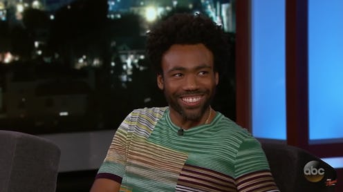 Glover was busy promoting his many projects, such as Solo: A Star Wars Story and the season finale of Atlanta. Of course, the conversation naturally turned to the singer's "This Is America" music video, which was released online on May 5 at the same time as his Saturday Night Live stint where he was the host and musical guest (as his alter-ego Childish Gambino). Host Jimmy Kimmel asked the multi-hyphenate, "I wonder if you are interested in all the analysis that goes on of that video. Have you seen these? There are opinion pieces, they're decoding the video..."