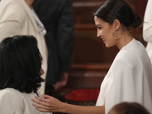 Like many female members of Congress, Ocasio-Cortez dressed in white to draw attention to women's issues on Tuesday. The choice was inspired by suffragettes who wore white while advocating for women's right to vote in the early 20th century. The Washington Post reports that the color has been used as a statement for female politicians ever since. Shirley Chisholm donned a white blazer for posters advertising her groundbreaking presidential bid in 1972, for example. And Hillary Clinton wore white when she accepted the Democratic nomination for president, debated Trump for the third time, and attended his inauguration.