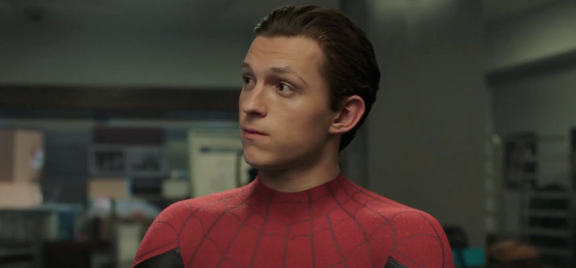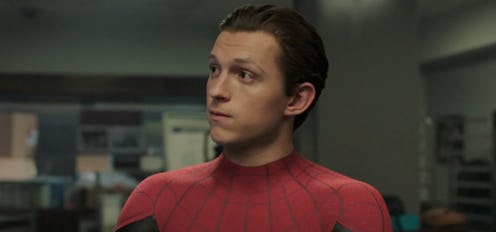 Based on the trailer, it's honestly hard to tell how many suits Spider-Man is wearing in the film. But, it's safe to say that the suit hanging in his closet when he's packing for his trip to Europe is not the suit Spider-Man wore in Avengers: Infinity War. This one definitely does not look like it could survive a trip to outer space. It does, however, resemble the suit from Homecoming, though it's also not that one either. Clearly, this suit has some upgrades, but it's far from the Tony Stark upgrades he gave his mentee last time we saw them — hmmm...