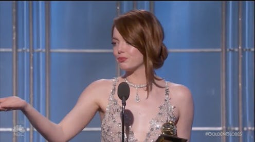 When Emma Stone won her Golden Globe for Best Actress in a Motion Picture — Comedy or Musical, it was clear that the star is beloved by her fellow actors, because there was a standing ovation — and one of the people standing up was Andrew Garfield, her ex-boyfriend. That show of support may have just been from one talented performer to another, but are Emma Stone & Andrew Garfield still friends? It's possible that these two managed to turn their ended relationship into a healthy friendship. After all, they always seemed like one of Hollywood's most likable, relatable couples.