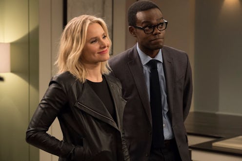 For a half-hour comedy, The Good Place cuts deep. Its first season was whimsical, inventive, and wildly entertaining, but it was also surprisingly profound, examining the blurred boundaries of what constitutes "good" and "bad." That dichotomy is still the crux of The Good Place Season 2, but the premiere episode broadens the conversation to address the hands of fate. Whereas Season 1 pondered the difference between action and intent, Season 2 seems to wonder if, in the long run, both will land you in the same place. Spoilers for The Good Place Season 2 premiere ahead.