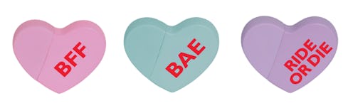 The Kardashians produce a lot of content. They also produce a lot of things you can buy. KKW Fragrance is one of the newest of the Kardashian-created products you can get your hands on, and Kim Kardashian West has just released new KKW Fragrance Kimoji Perfumes just in time for Valentine's Day. The limited edition trio of scents includes three varieties of fragrance: BFF, Ride Or Die, and Bae. According to a press release, the three perfumes (all of which are created to look like Kim's Kimoji collection) include things like "playful notes of wild berries and crisp star apple" (BFF), "luscious black cherries and juicy purple plum" (Ride Or Die), and "flirty floral heart comprised of jasmine sambac and gardenia blossom" (Bae). One thing they all have in common: they're sweet.